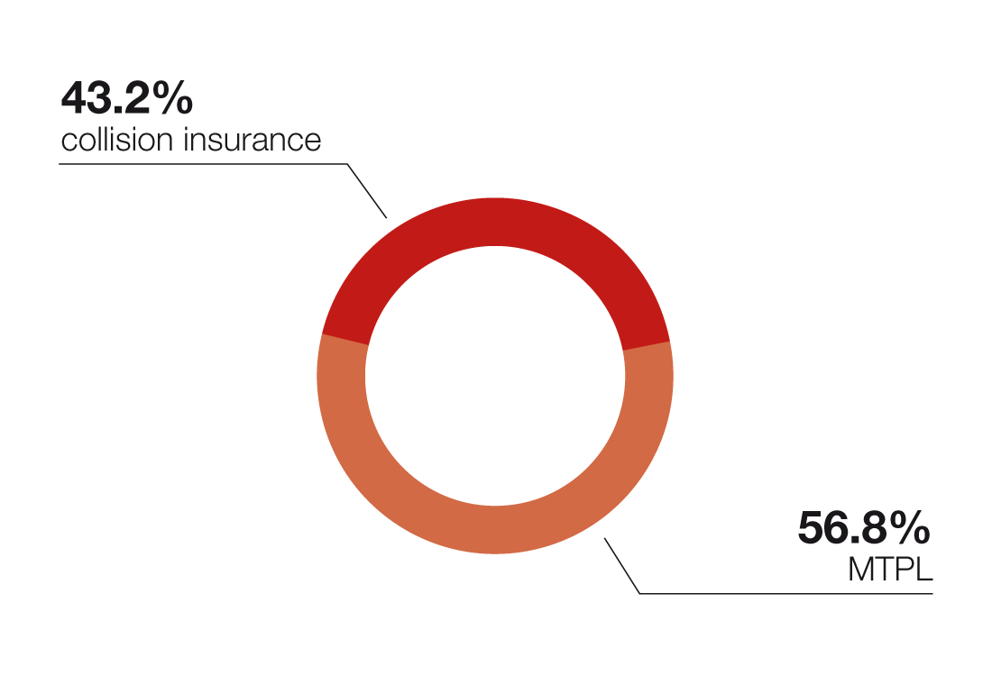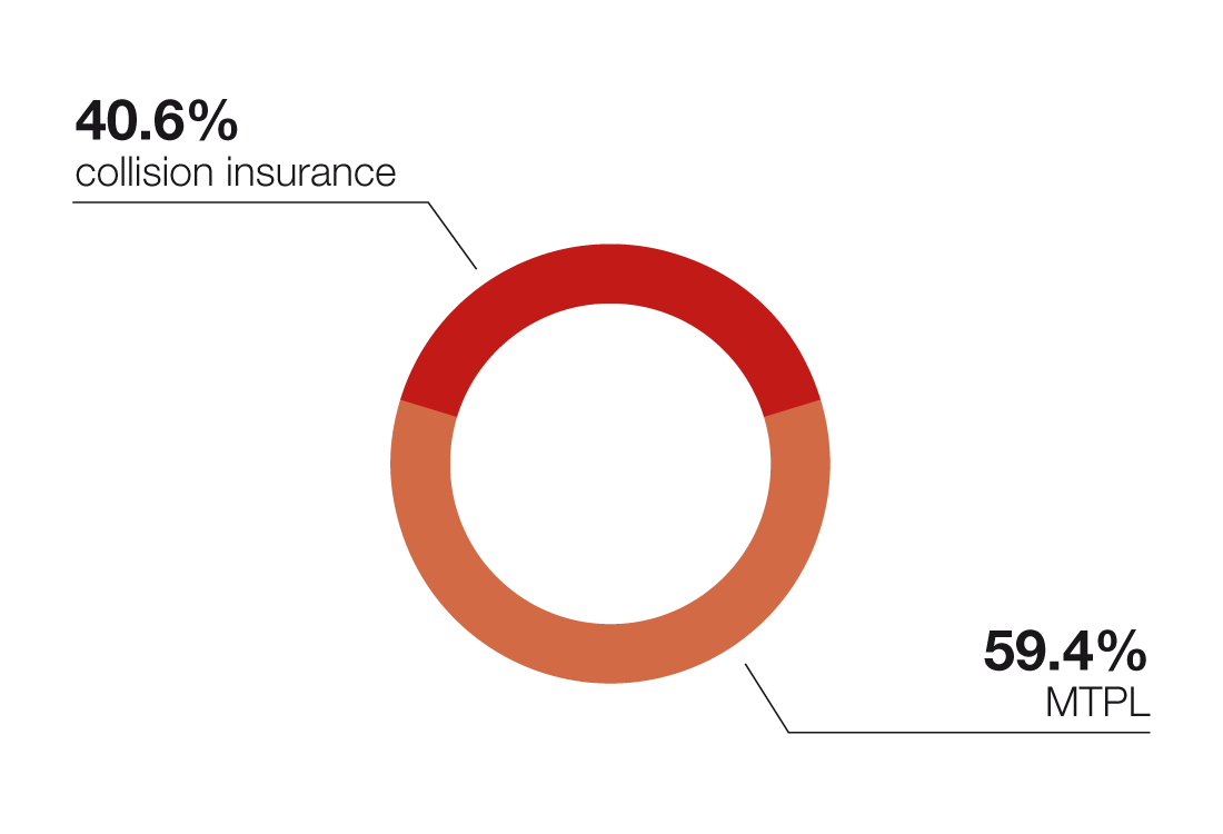 | Collision insurance | 934.4 | 39.8% | 911.4 | 37.6% | 994.7 | 35.2% |