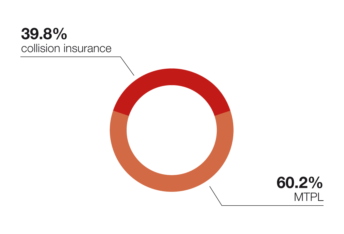 The absolute winner in 2016 was collision insurance, which improved 9.5% year on year. The increase in written premiums by nearly CZK 1.5 billion accounts for almost half the growth in non-life insurance. MTPL contributed a further CZK 0.5 billion to growth. The higher number of insurance contracts played a decisive role in the positive development of both motor insurance products. The rise in collision insurance was boosted by growing sales of new vehicles, while MTPL benefited from the higher overall number of vehicles registered.