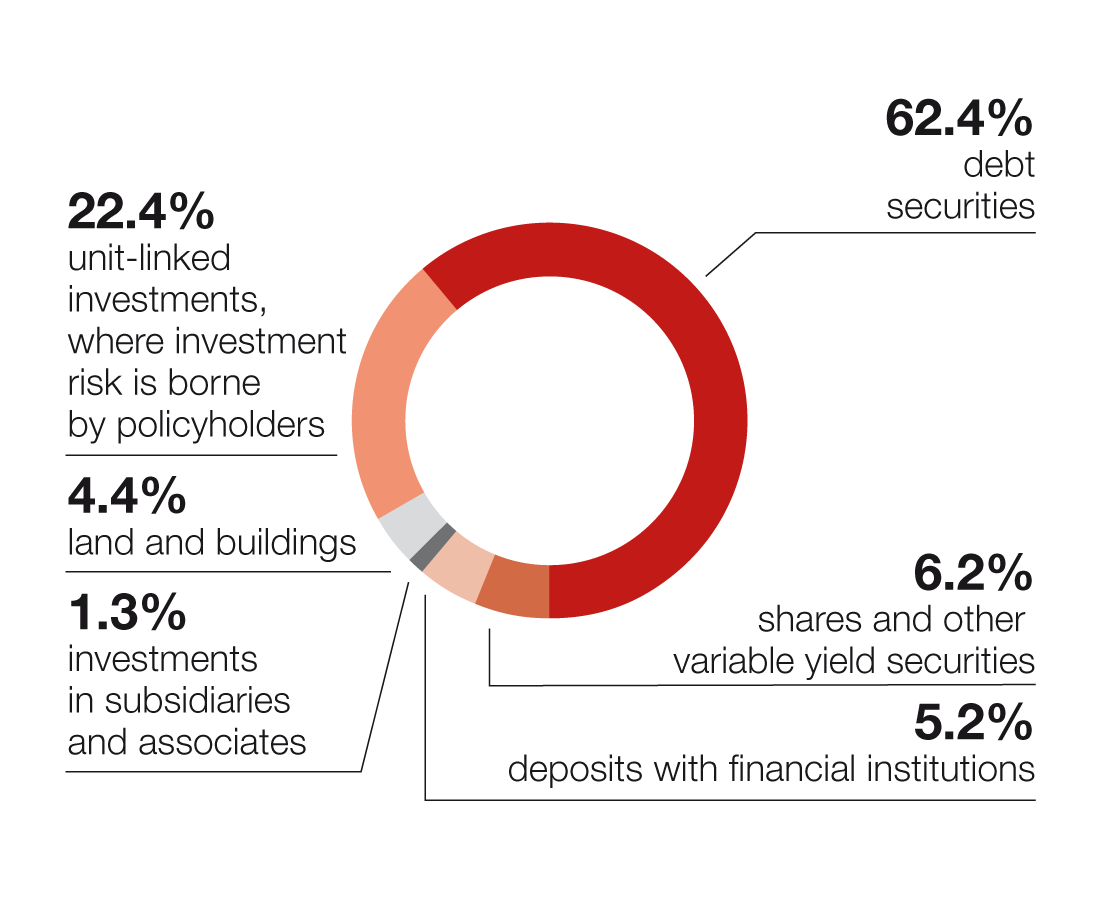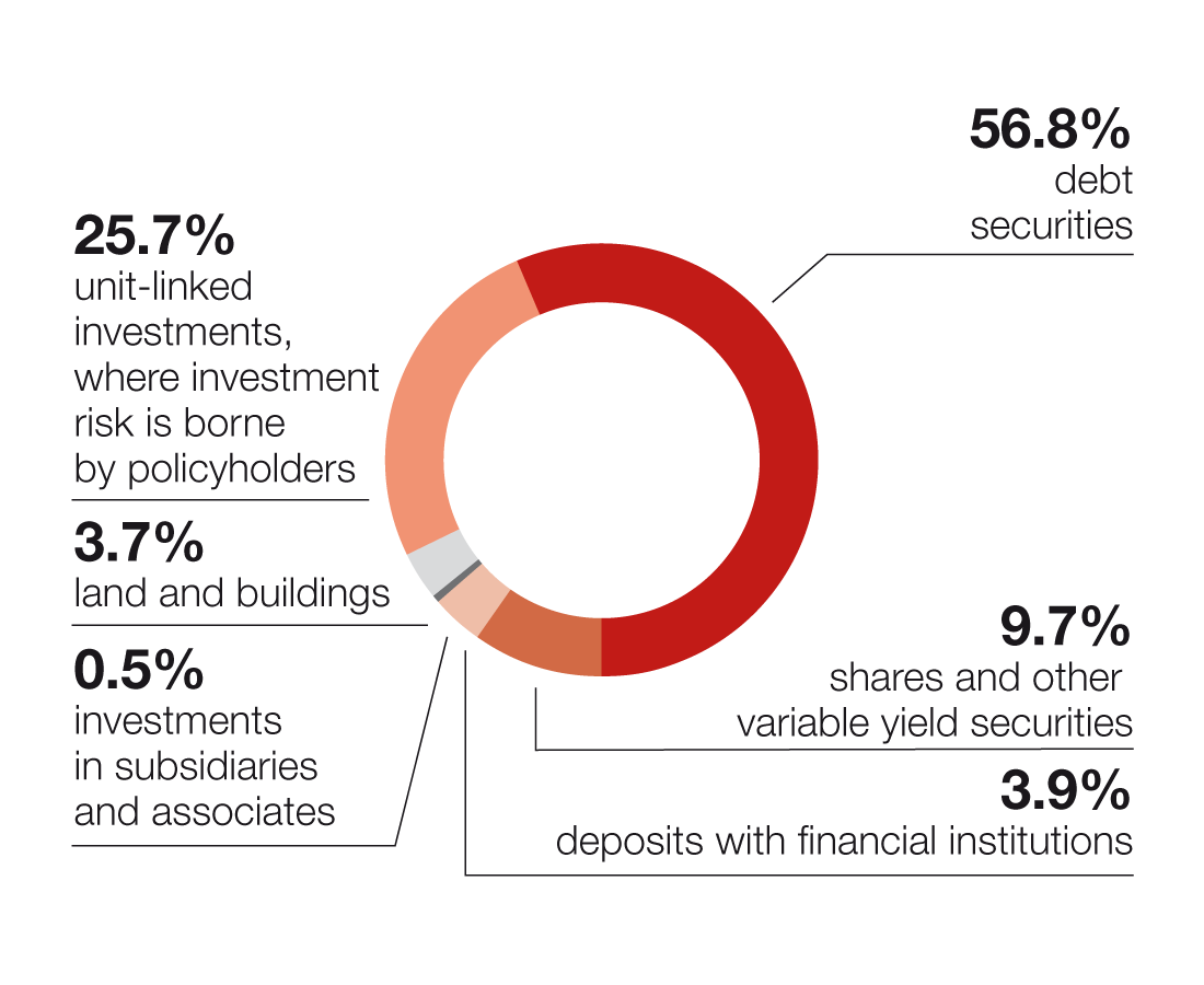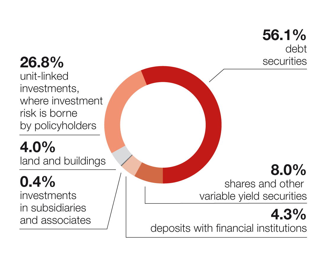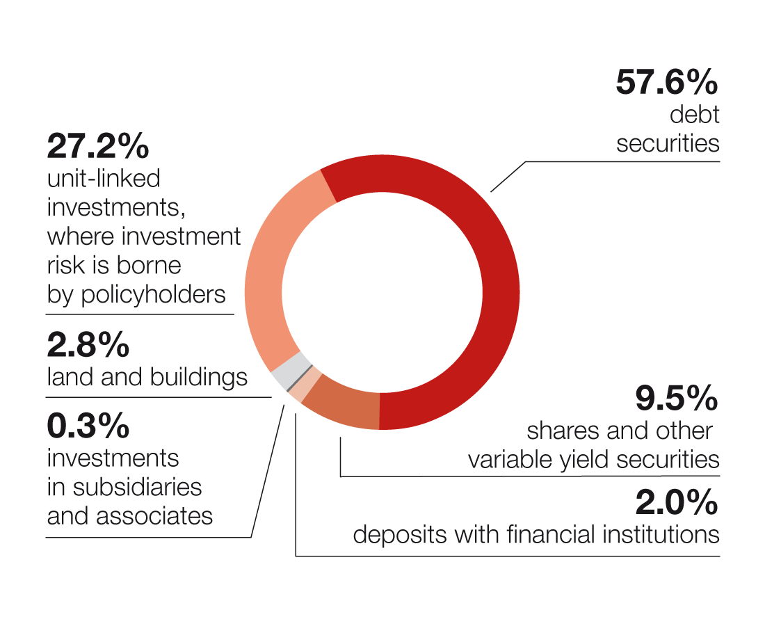 | Unit-linked investments, where investment risk is borne by policyholders | 4,787.6 | 26.8% | 4,290.6 | 24.1% | 3,643.7 | 22.4% |